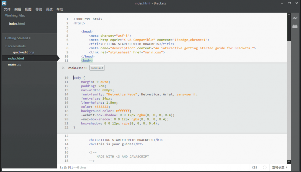 簡單試用了一下,Brackets最大的亮點有兩處,一是可以在DIV上按